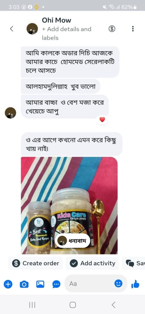ডাক্তারের পরামর্শকৃত ও মায়ের বিশ্বাসে গড়া ১০০% হোমমেড শিশুখাদ্য – শিশুর পুষ্টি ও নিরাপত্তার সেরা সমাধান!