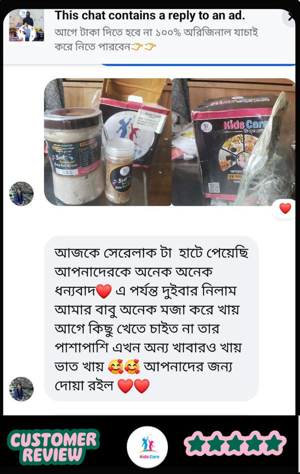 একদমই না। আমাদের সেরেলাক সম্পূর্ণ ঘরোয়া পরিবেশে প্রাকৃতিক উপাদান দিয়ে তৈরি। এতে কোনো কৃত্রিম রং, ফ্লেভার বা প্রিজারভেটিভ ব্যবহার করা হয় না।
