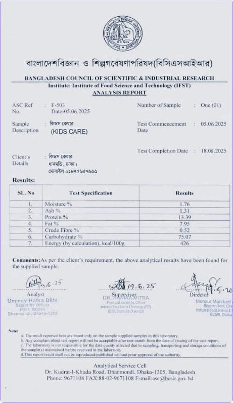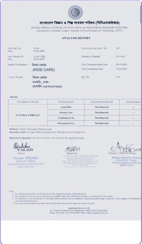 - প্রাকৃতিক পুষ্টি: ১০০% ঘরোয়া ও প্রাকৃতিক উপাদানে তৈরি, যা সম্পূর্ণ নিরাপদ।